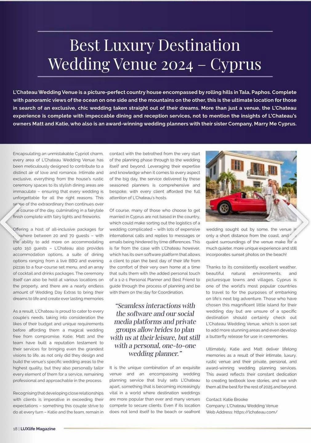 “A picture-perfect country house with impeccable dining and reception services, delivering weddings straight out of a dream.”— LUXLife Magazine